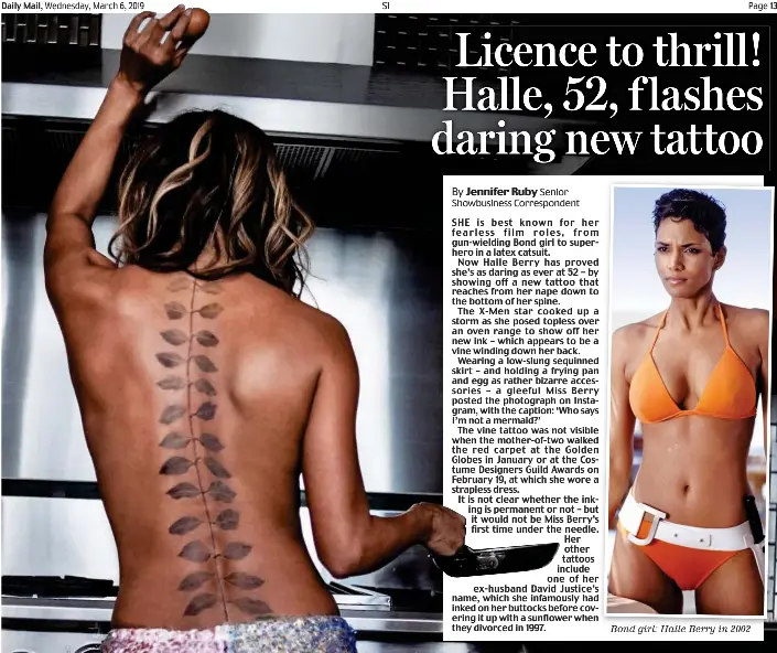 Halle Berry Tattoo - Halle Berry Gets A New Tattoo And Poses In Topless Instagram Pic Tattoo Ideas Artists And Models - It's a tattoo down her back and it's quite prominent.. The new ink featured a long vine with leaves on both sides running down her spine from the top of her. Halle berry just got a giant tattoo on her back, and idk how she made it through that tattoo session. She is testing different designs for an upcoming role. Amy sussman/getty images for cdga halle berry is rocking some new ink! Running along her spine, the.